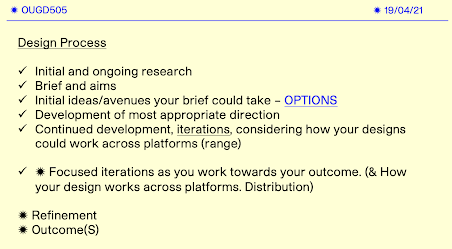 Over the Easter break I definitely had more of a break than I intended. I'm not beating myself up about it though, as I feel well rested and currently really motivated to finish the project on a high. I really don't want to let myself down with this outcome. I'm feeling okay and pretty much up to date. My key work at the moment is refine as I have so many ideas that could all be noted down as future things, but for this outcome I need to think about what's relevant instead of trying to do it all.